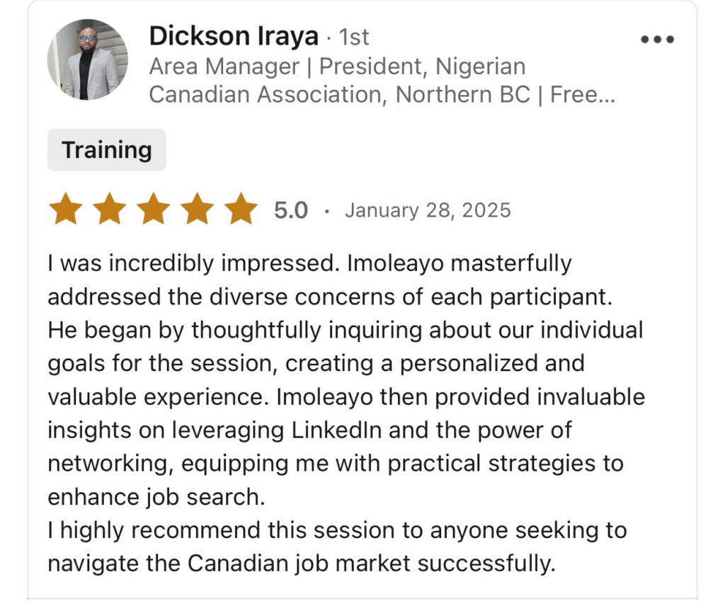 This program is designed for professionals applying for competitive HR, leadership, or technical roles; immigrants and newcomers navigating the Canadian job market; managers and executives preparing to step up to the next level; and anyone ready to move beyond generic advice and embrace proven, story-driven strategies for interview success.